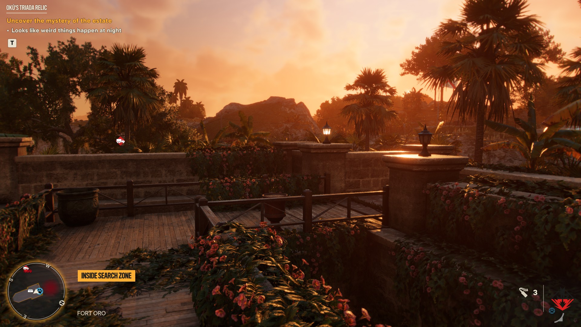 Der Rest knallt halt wie er soll: Schießen funktioniert gut wie eh und je, mit einem besonderen Bonus: das Headshot-Geräusch. Ich komme mir selber blöd dabei vor, dieses völlig unrealistisch laute Knochenknacken als Indikator für einen tödlichen Kopfschuss wie so ein Sechzehnjähriger Splatter-Fanatiker zu feiern, aber seit Far Cry 6 vermisse ich das in anderen Shootern schmerzlich, es wertet das Spiel auf. Man hat alles, was Far Cry in den letzten Teilen auch hatte: Außenposten; kleinere Militäreinheiten wie Konvois, Checkpoints und Anti-Aircraft-Kanonen; dazu Rennen und auch die in meinen Augen sehr netten kleinen Puzzle-Rätsel, die in Far Cry 5 als Prepper Stashes eingeführt wurden. Das ist alles relativ generisch, aber zusätzlich zu doch einigen Nebenmissionen eine runde Sache, bei allem Hass auf Ubisoft. Alles darüber hinaus, die Spezialeinsätze außerhalb der Map, die seltsamen „Bandido Operations“, bei denen man sich durch ein paar Textbildschirme klickt, um Ressourcen zu bekommen oder Domino und Hahnenkämpfe, hätten meinetwegen nicht sein müssen, aber um ehrlich zu sein, haben sie mich auch nicht gestört und ich hab alles mal ausprobiert und mehr oder weniger gemocht. Passiert bei einem Spiel dieses Umfangs halt.
